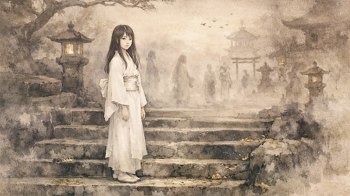 知っているはずがないのに、確実に知っていた。それは記憶ではなく、もっと深い部分の何かが、この場所を認識していた。左手の石灯籠の欠けた部分、右側の苔の生え方、その奥の階段の数までもが、私の中の何かが覚えていた。